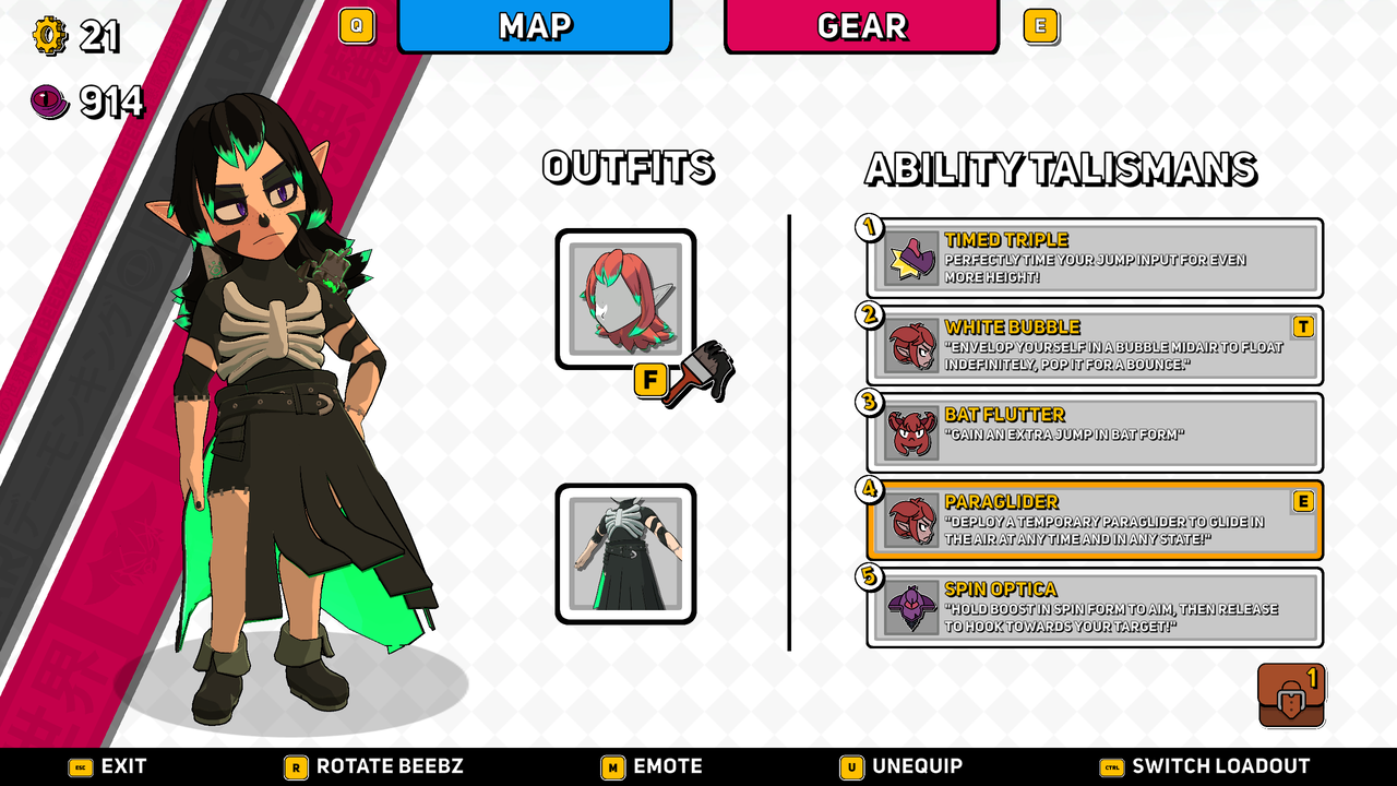 Speedrun modes offer a chance for platforming pros to really push their skills and mastery of the game. Global leaderboards give high-level players chances to claim top spots on each individual island. One mode allows you to customize your talismans, letting players get creative with the skills they’ll use to complete the level. The other version of the speedrun mode gives no talisman assists to the player and demands that they use only Beebz’s standard skills and moves to complete the level. This split between competitive playstyles will ensure players have many ways to play, even in the postgame.