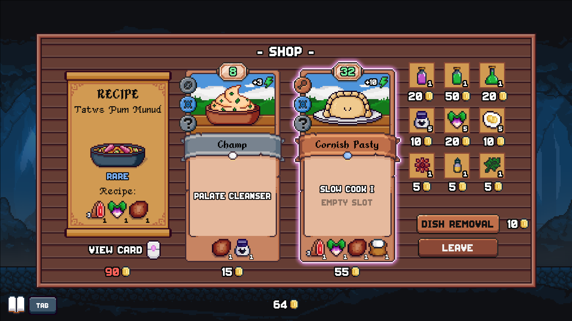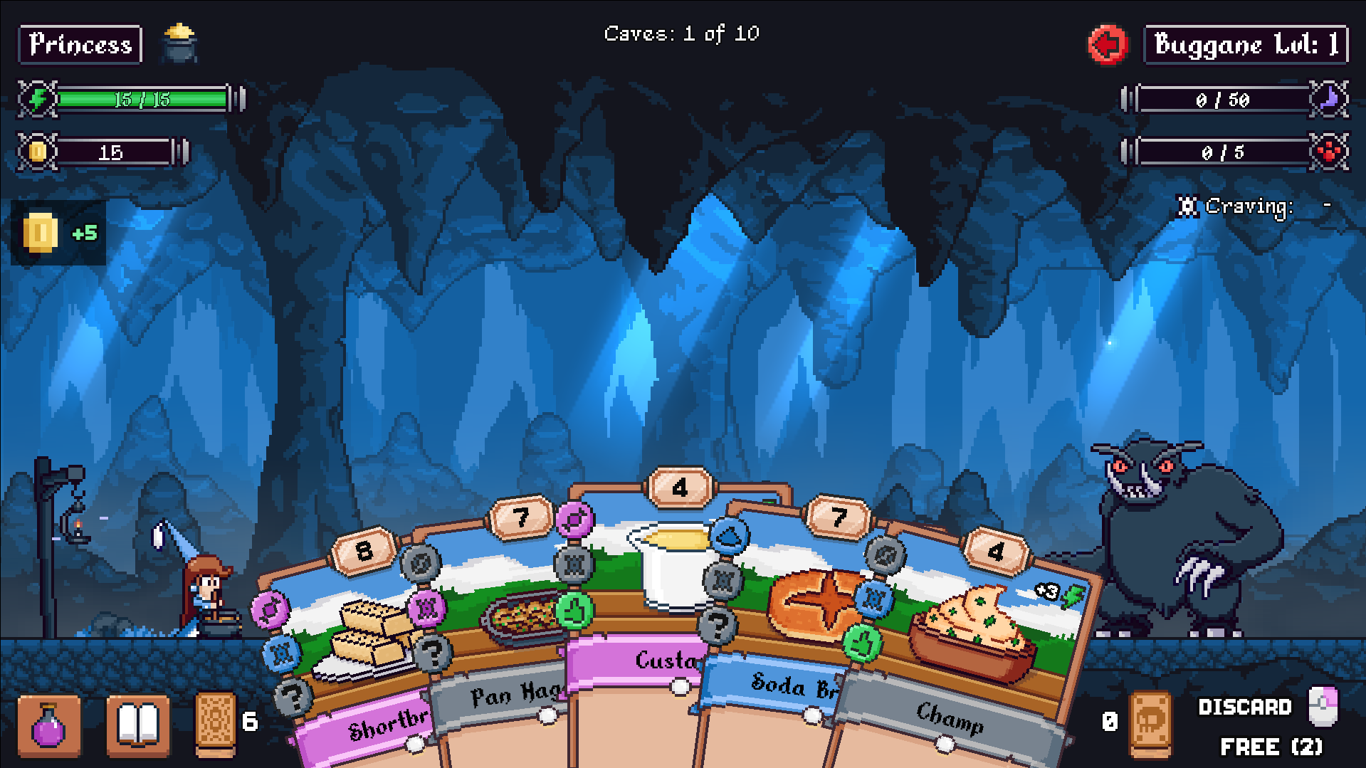 I felt truly able to make what I wanted to do work to a viable level. Especially with the game allowing me to utilize potions or seasonings that would help me further my goals of narrowing my build down without the standard “remove card” ability. The cookware or “trinkets/artifacts” as they are called in other games, feel really good in this department as well. Though I did start to notice a pattern of feeling like some were just constantly, outright better than others, leading to more of the same decisions during runs. Which is a bit concerning on the balancing side, but while playing, I more so feel it may just be a lack of more content side effect than anything, which is to be expected based on where the game is in its development.